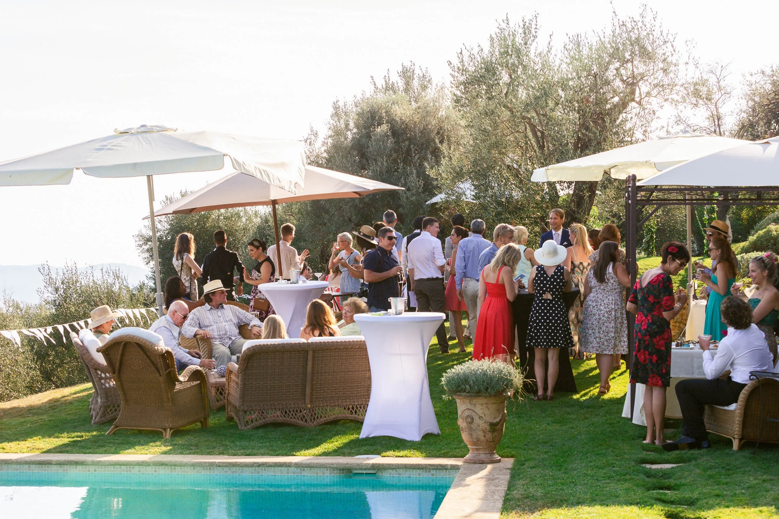 We invited as many as we could seat at the round tables on the patio. We were... maybe 60 people?! The food came from a local caterer we knew, it was all very French!
